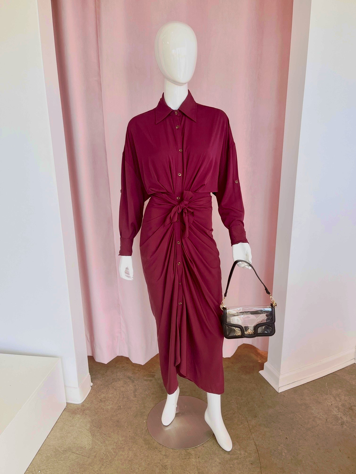 TENCEL BUTTON DOWN SHIRT DRESS WITH FRONT TIE