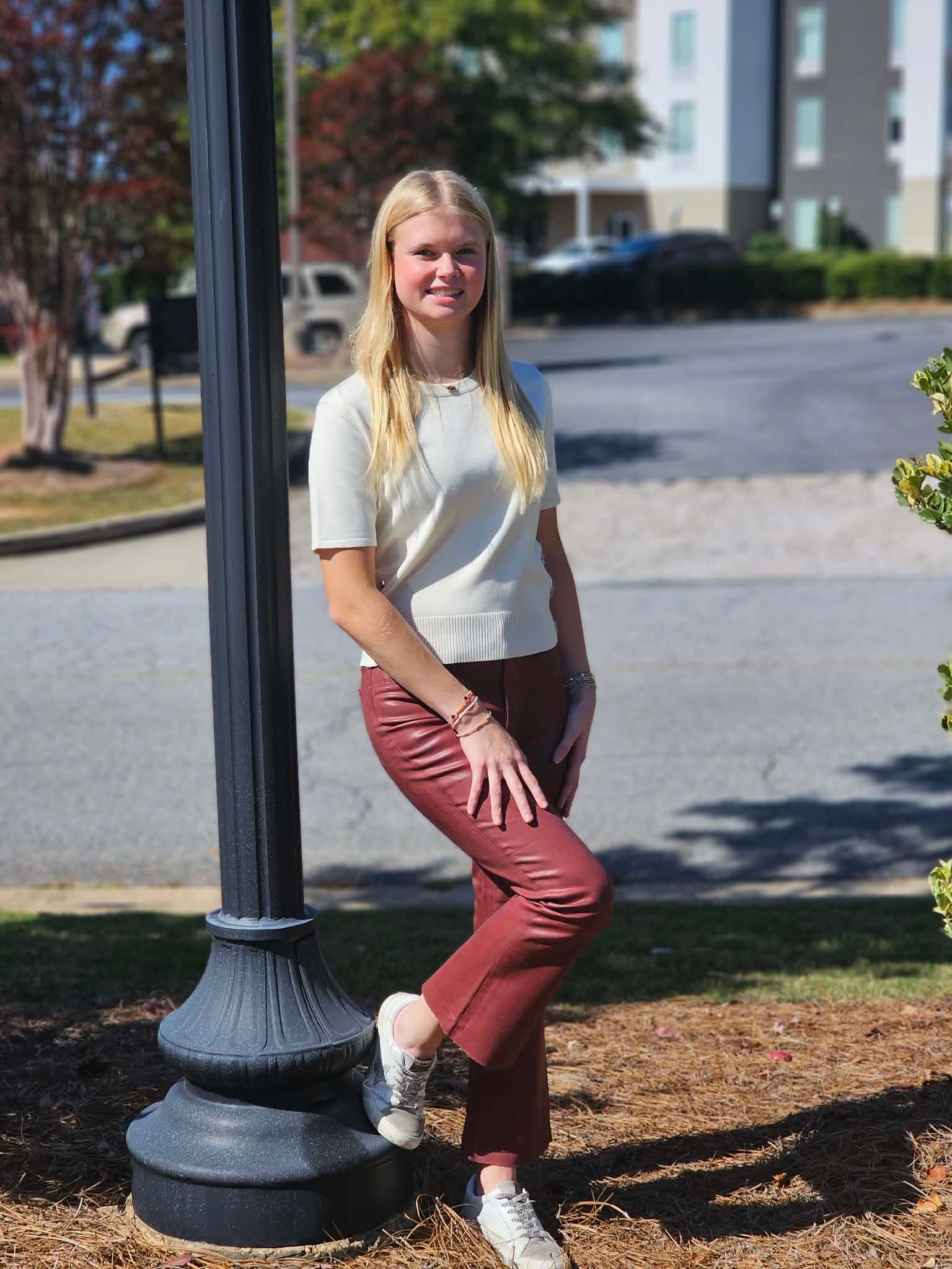 CREAM SHORT SLEEVE SWEATER WIT BOW TIES ON SIDE .